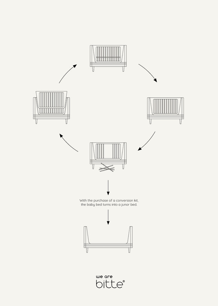 NB! This conversion kit only fits the new version of the Nature Baby Bed 2.0 which has no visible screws.