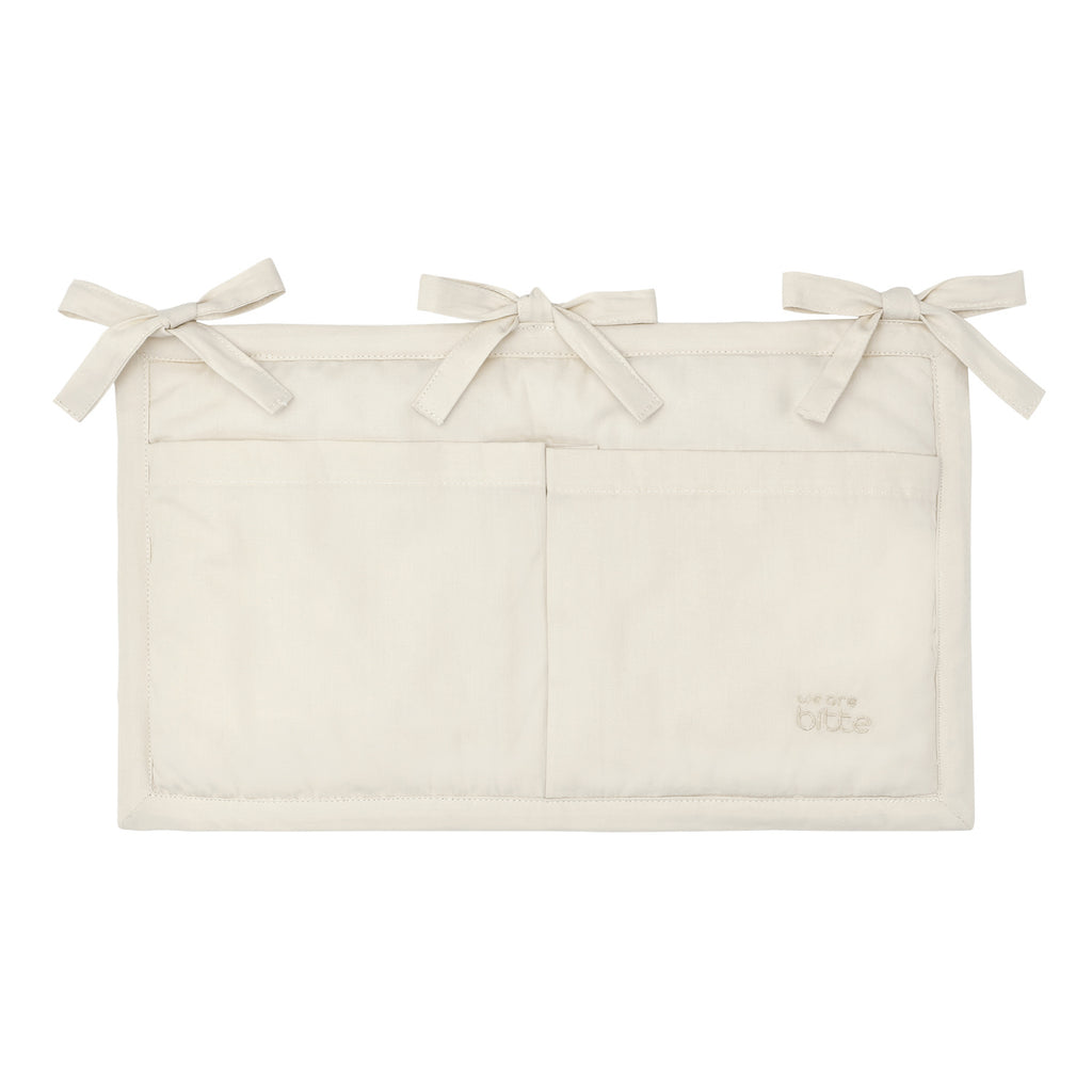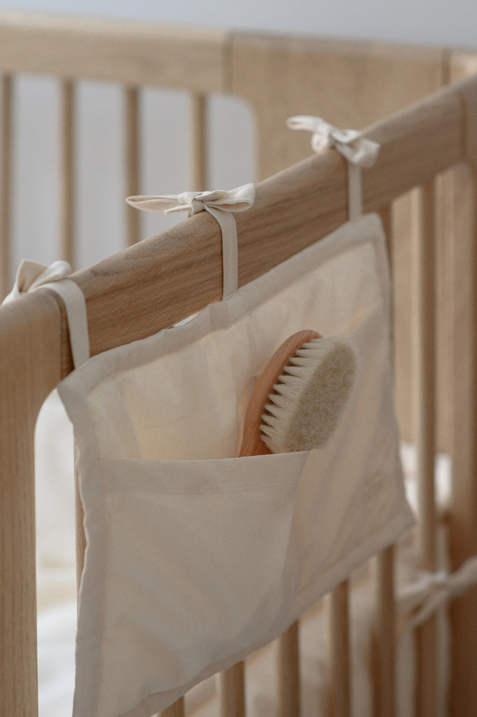 This beautiful bed pocket made from organic cotton is perfect for practical storage of baby's pacificers, cuddling cloth, and other small items.